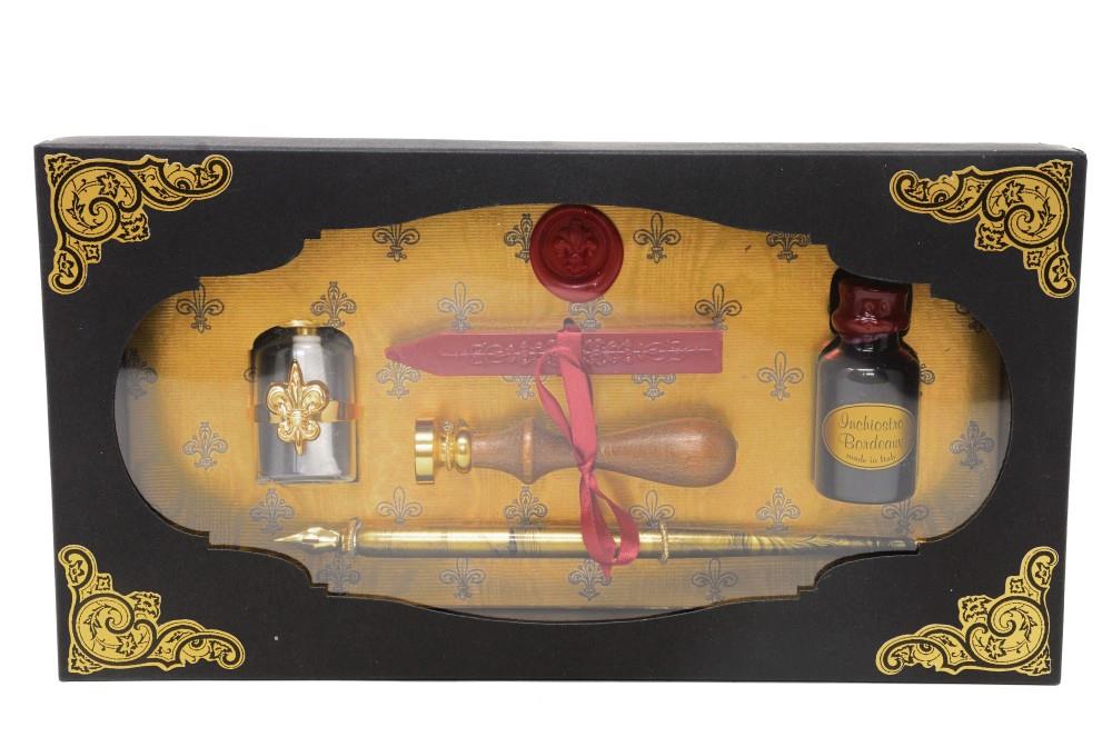 Set with brass seal and wax stick glass wax warmer, nibholder and ink