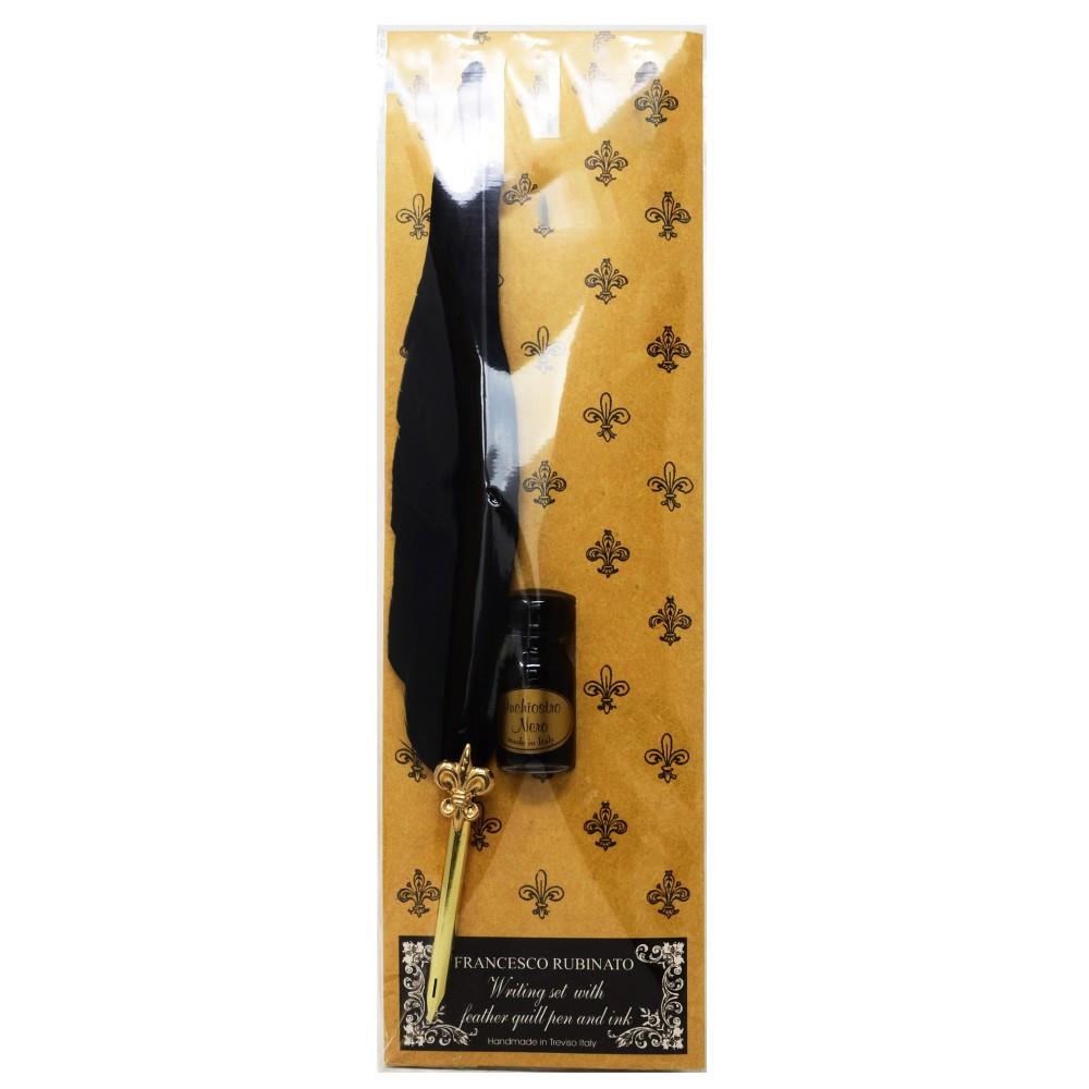 Writing set with flower petal decoration and ink