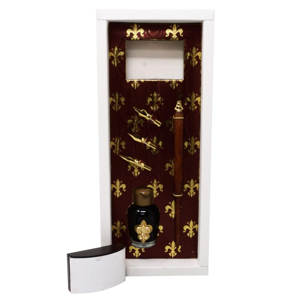 Writing set with pen holder, ink, and blotting paper